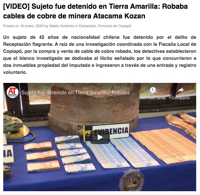 PDI detuvo a sospechoso de compra y venta de cable de cobre robado en Tierra Amarilla - (cooperativa online)
