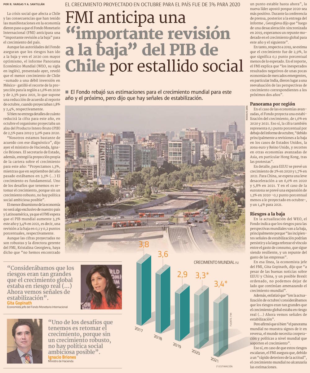 FMI recorta proyecciones de crecimiento de América Latina para 2020, influenciado por tensión social en Chile - (El Mercurio de Santiago)
