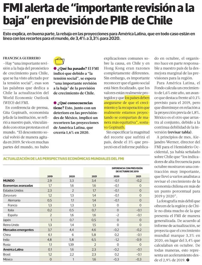 FMI recorta proyecciones de crecimiento de América Latina para 2020, influenciado por tensión social en Chile - (El Mercurio de Santiago)