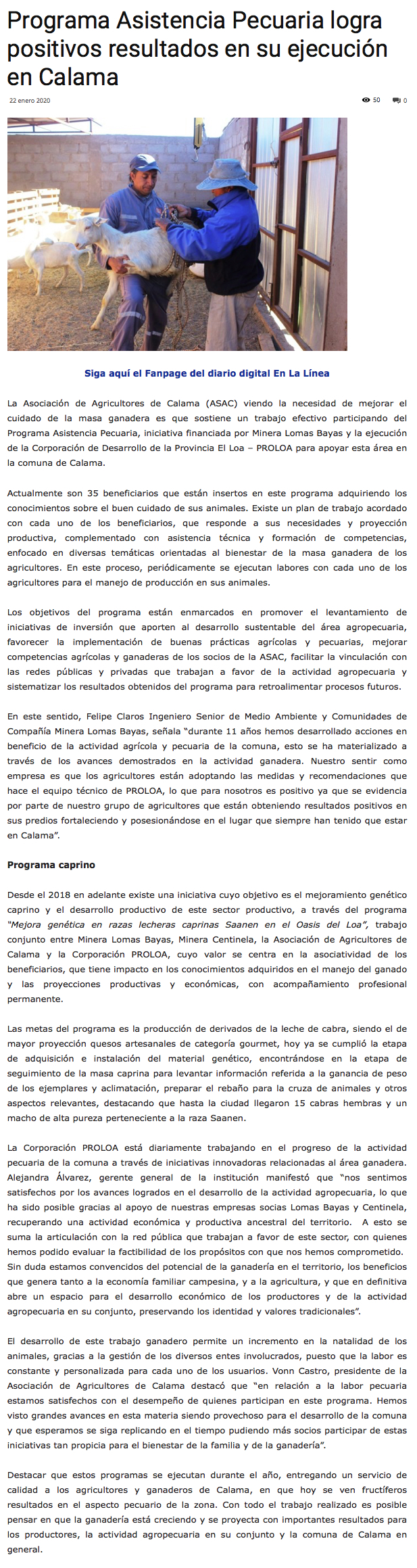 Positivos resultados logra el programa pecuario desarrollado con agricultores - (El Mercurio de Calama)