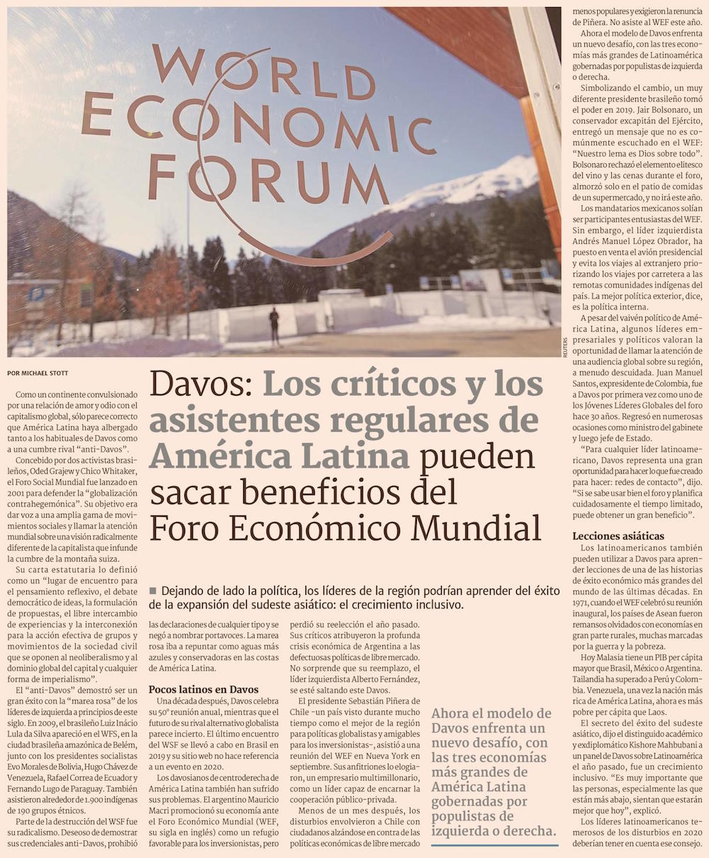 Foro Económico Mundial define modelo de liderazgo para enfrentar los retos climáticos, sociales y económicos - (Diario Financiero)