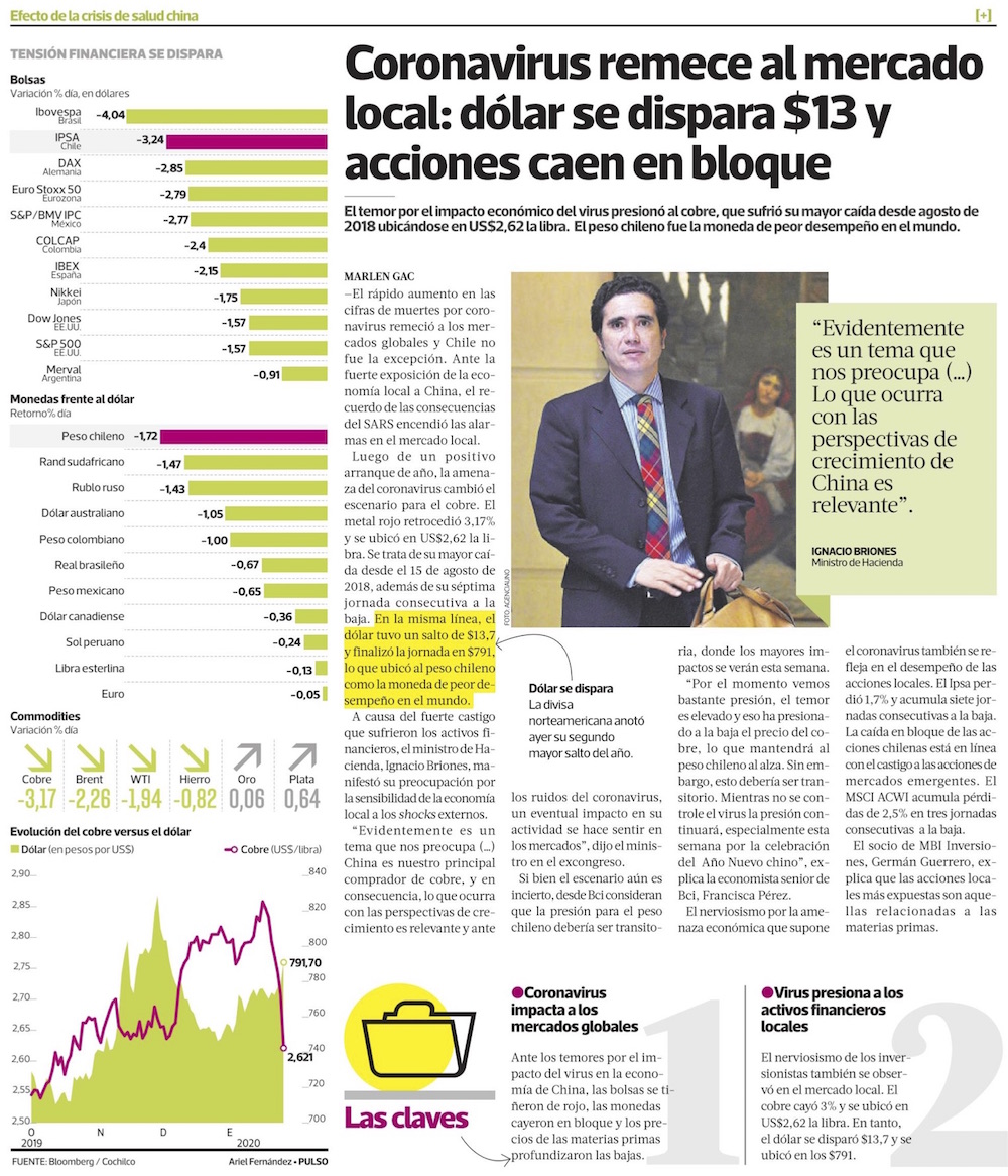 Incertidumbre global por coronavirus atrasaría más la recuperación en Chile - (Diario Financiero)