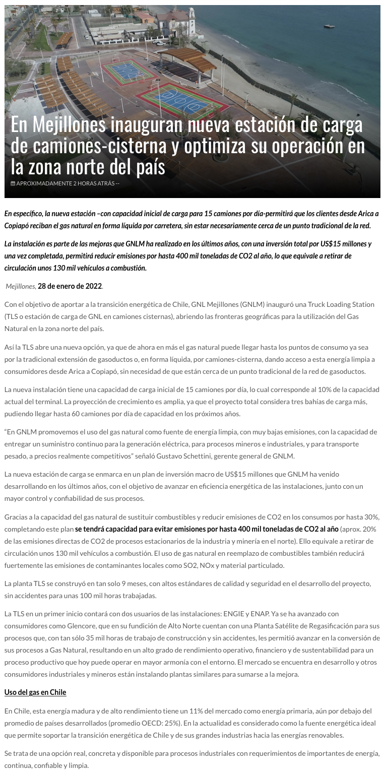 GNL Mejillones apunta a suministrar combustible a minera Glencore - (mch.cl)