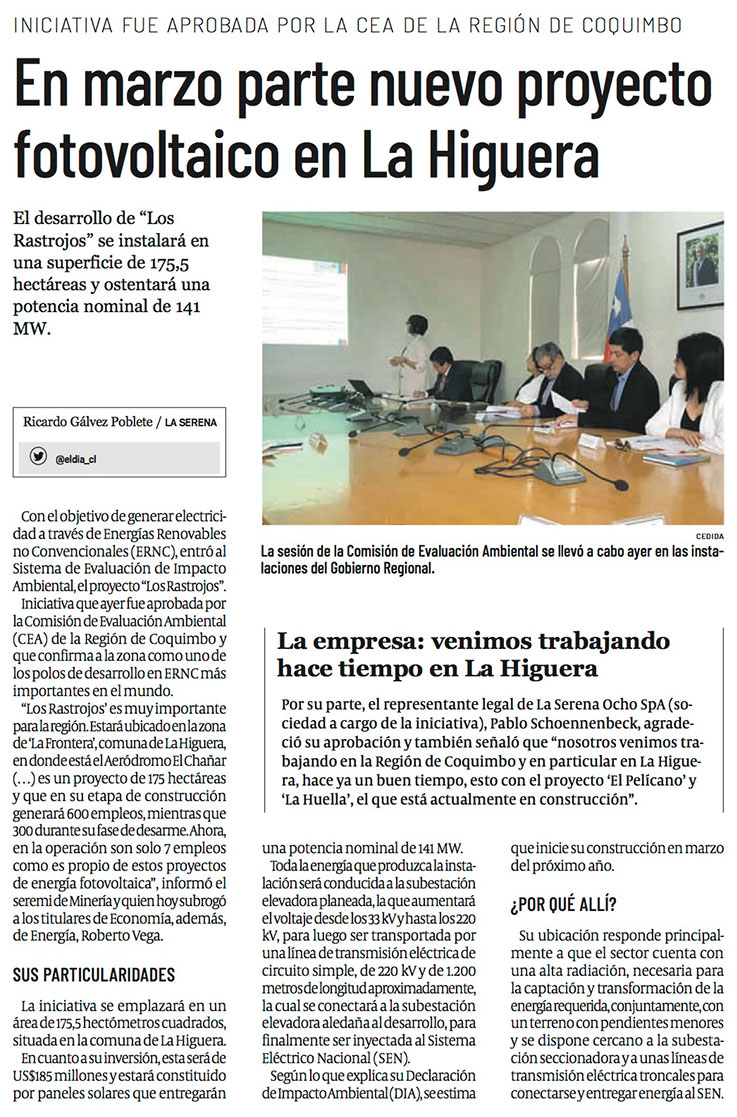 Comisión de Evaluación Ambiental aprueba parque fotovoltaico “Los Rastrojos” en La Higuera - (La Región)