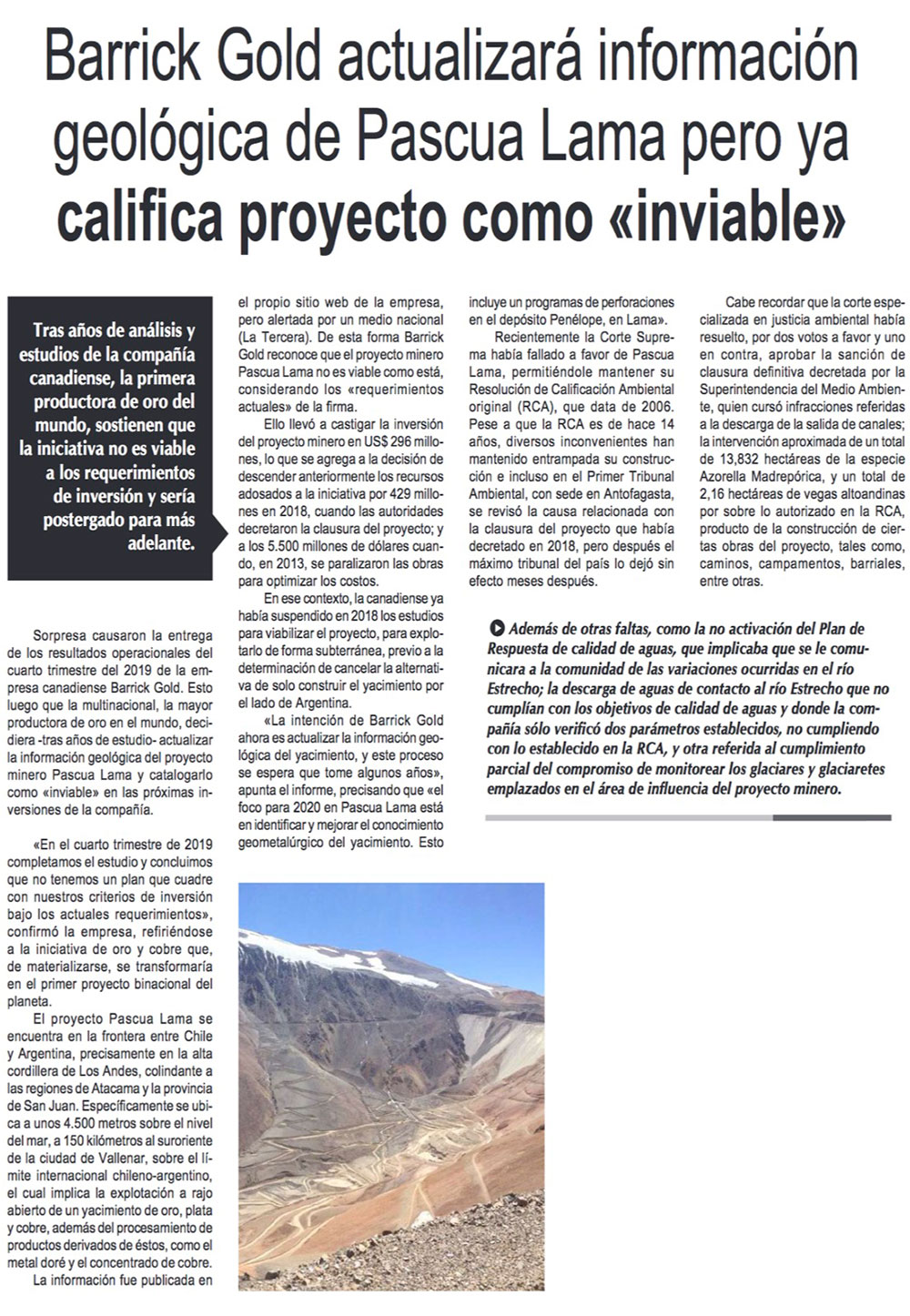 Barrick Gold admite que Pascua Lama, tal como está, es un proyecto inviable - (cooperativa online)
