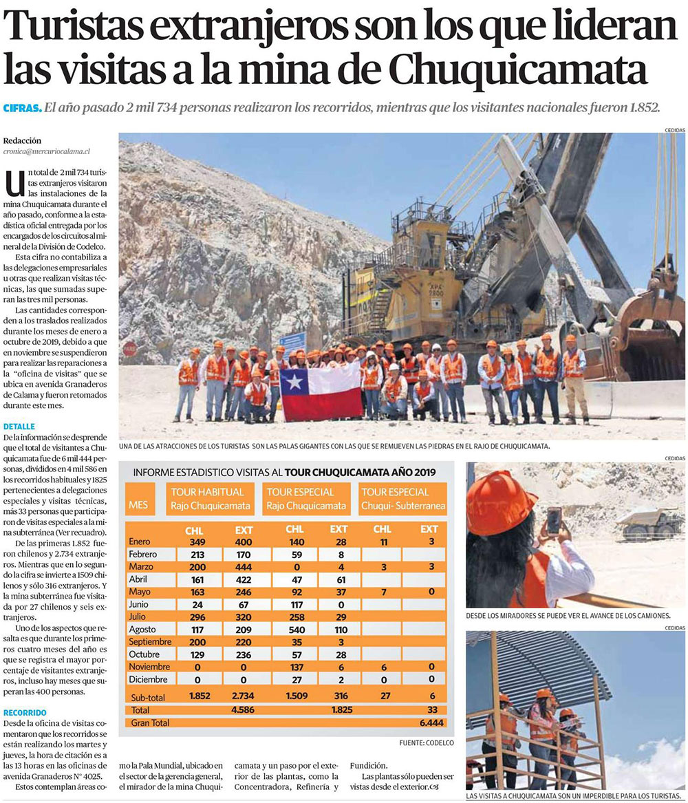 Extranjeros son los más interesados en visitar Chuqui - (El Mercurio de Antofagasta)