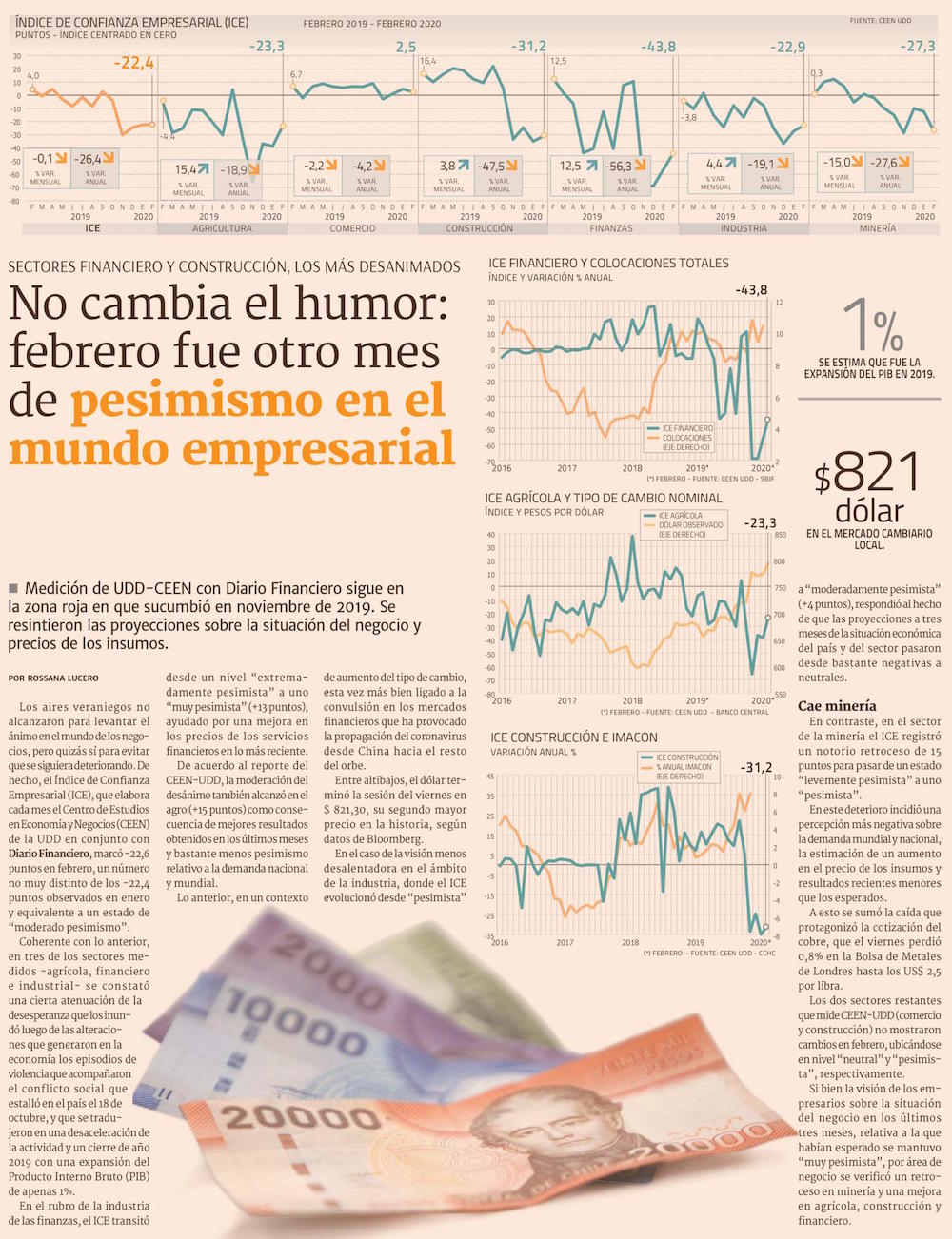 Confianza empresarial sube en febrero, pero se mantiene por cuarto mes en zona de pesimismo - (El Mercurio de Santiago)