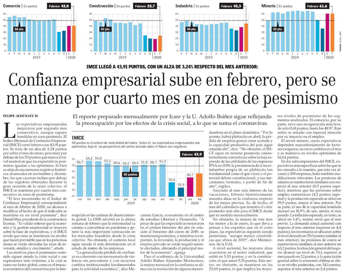No cambia el humor: febrero fue otro mes de pesimismo en el mundo empresarial - (Diario Financiero)