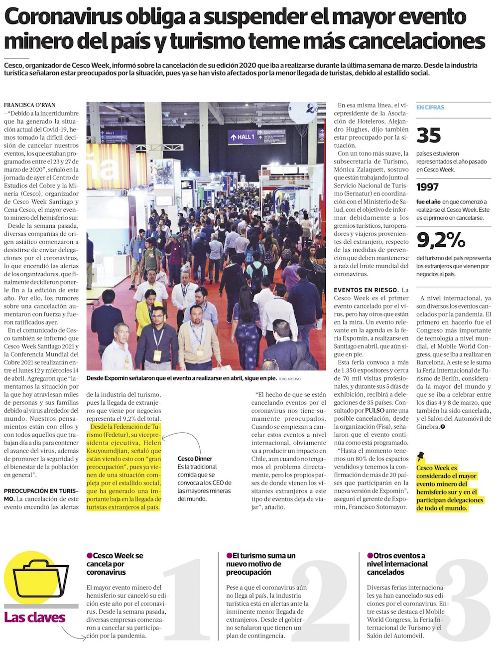 Incertidumbre por covid-19 lleva a Cesco a cancelar Semana de la Minería - (El Mercurio de Santiago)