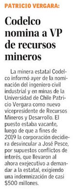 Codelco nombra a Patricio Vergara como vicepresidente de Recursos Mineros y Desarrollo - (Pulso Online)
