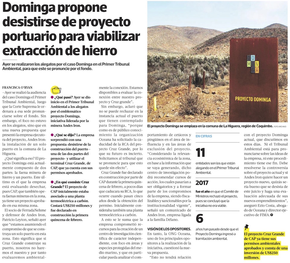 Andes Iron sorprende en alegatos por Dominga y se compromete a que habrá un solo puerto en La Higuera - (Diario Financiero)