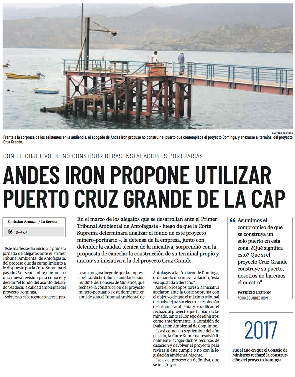 Giro en caso Dominga: Andes Iron se allana a usar el puerto de CAP - (La Región)