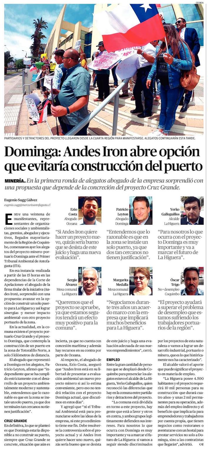 Andes Iron sorprende en alegatos por Dominga y se compromete a que habrá un solo puerto en La Higuera - (Diario Financiero)