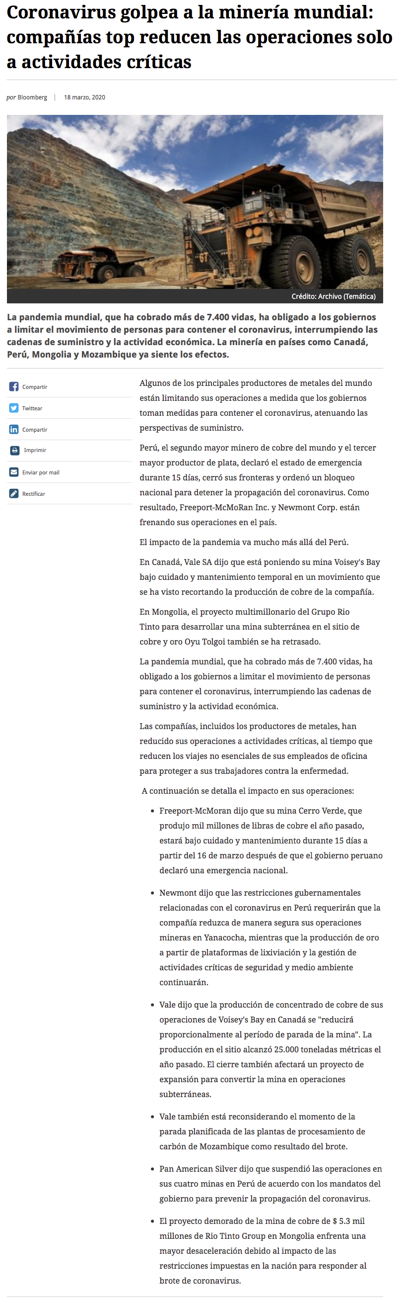 El virus ya impacta en faenas mineras del mundo. Casos, empresas y medidas - (miningpress.com)