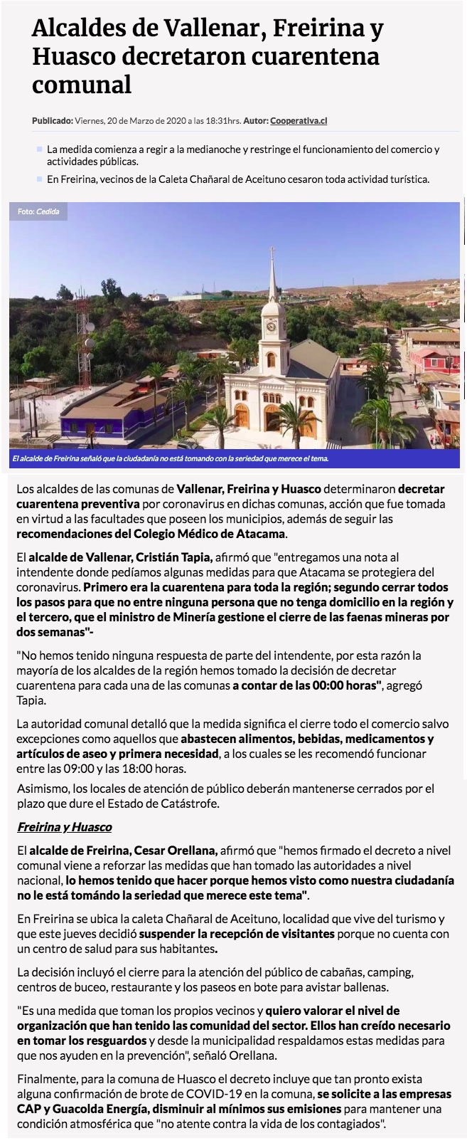Municipios decretan cuarentena preventiva en seis comunas de la región - (El Diario de Atacama)