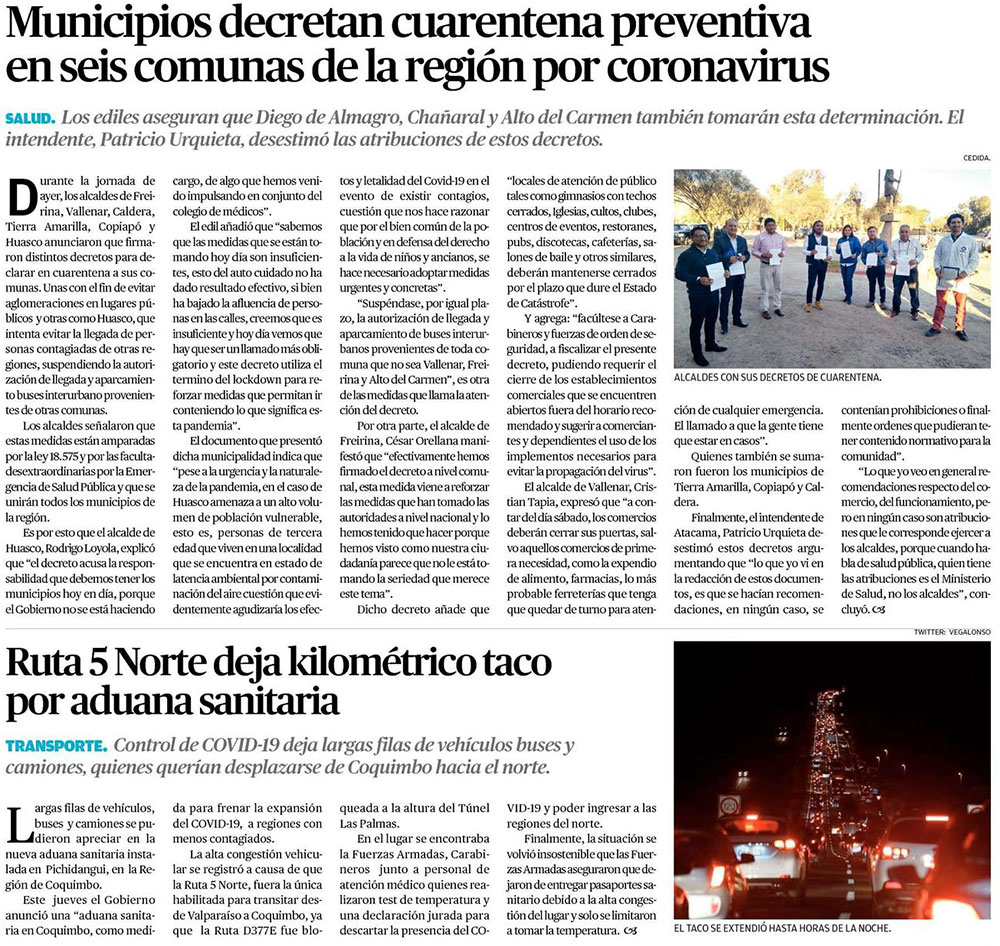 Alcaldes de Vallenar, Freirina y Huasco decretaron cuarentena comunal - (cooperativa online)