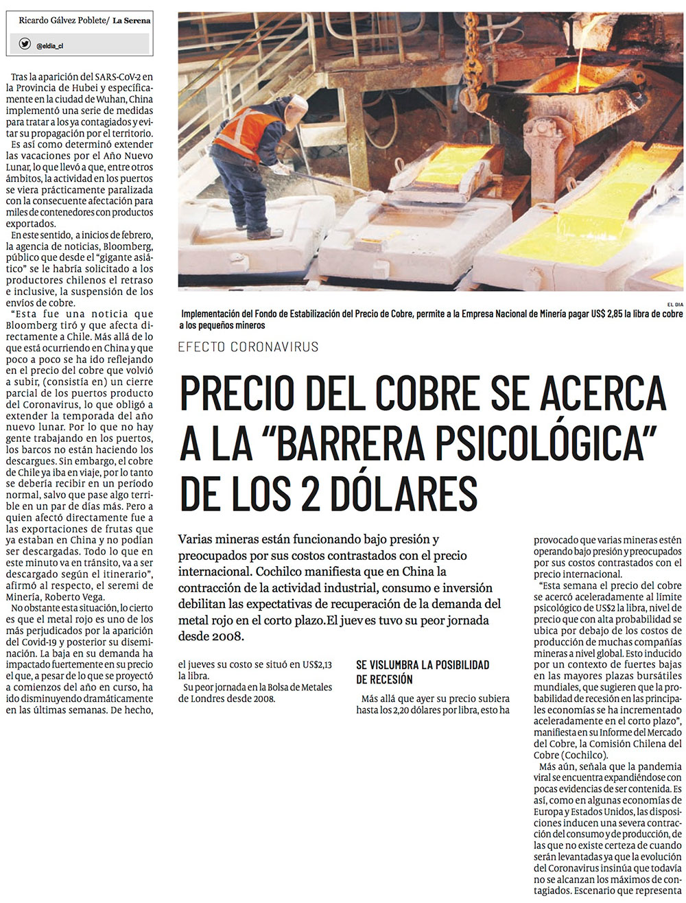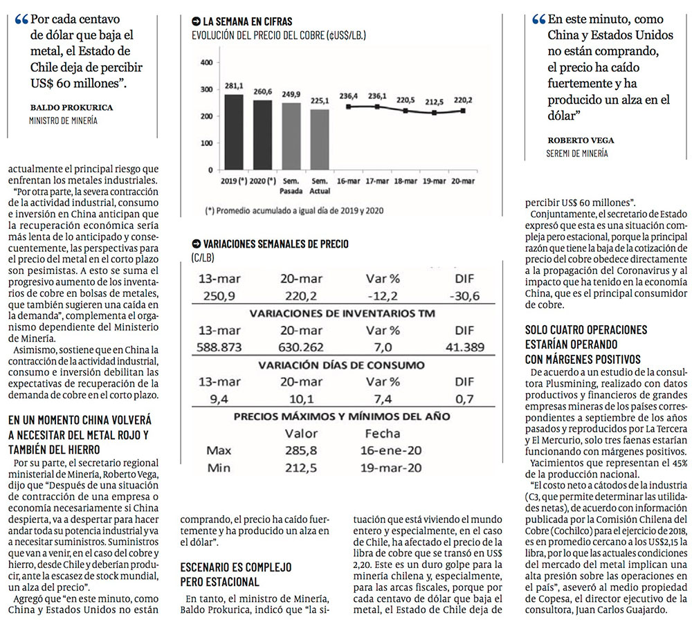 El cobre se alejó 3,63% del límite sicológico de los 2 dólares la libra - (El Mercurio de Calama)