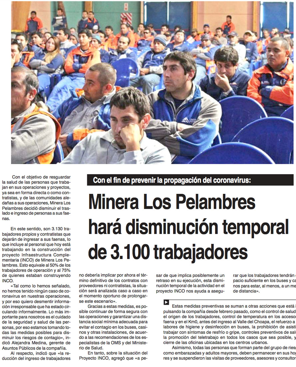 COVID-19: mineras reducen cantidad de funcionarios e implementan teletrabajo - (Estrella de Iquique)