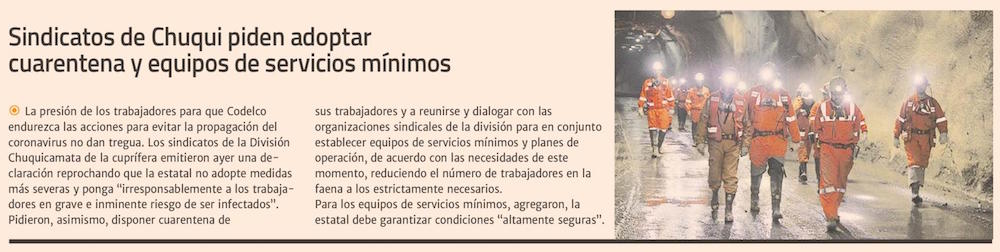 Sindicatos de Chuqui piden cuarentena para los trabajadores - (Estrella de Antofagasta)