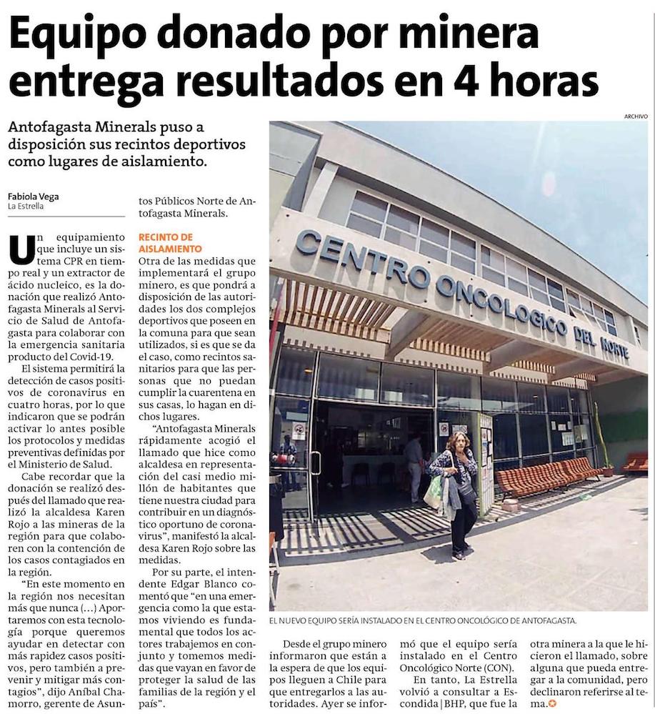 Antofagasta Minerals entregará equipos para detección rápida del Covid-19 - (mch.cl)