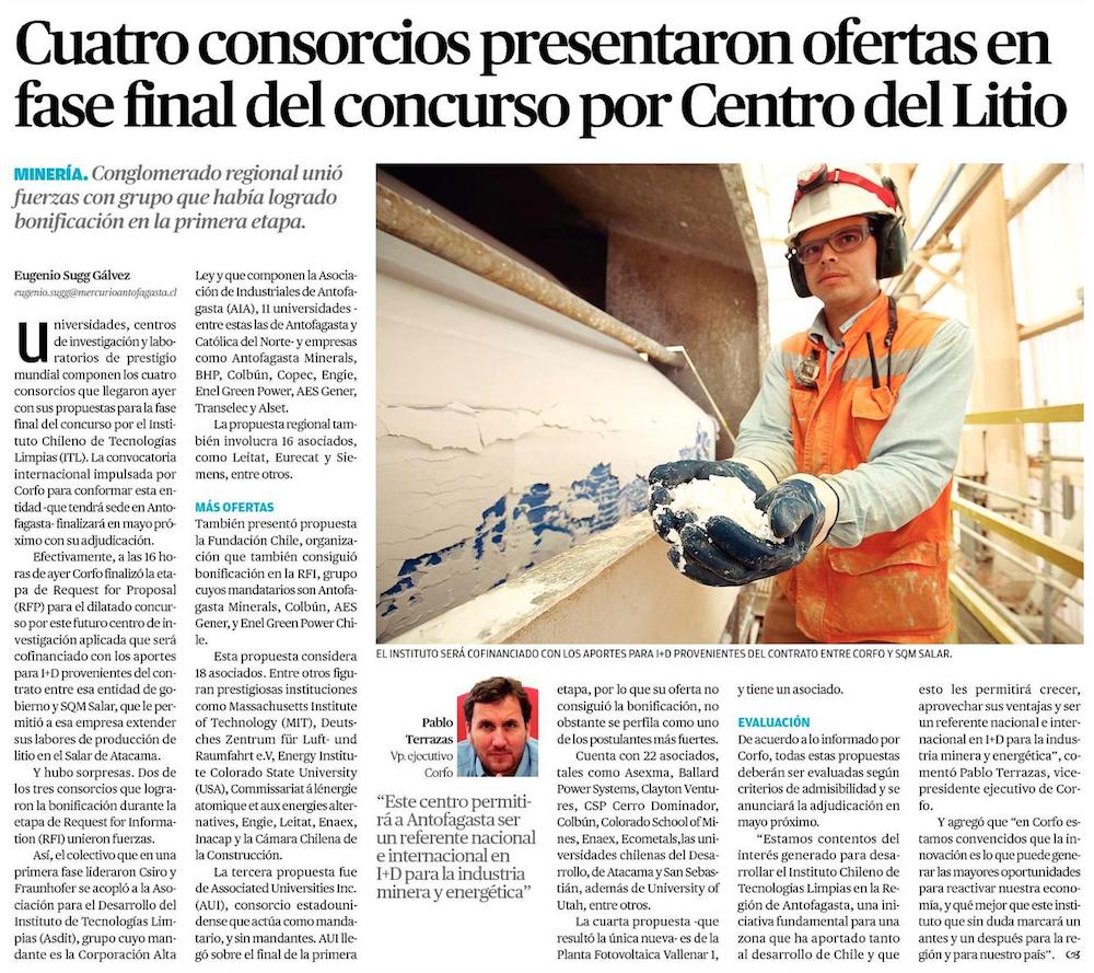 Tres consorcios en recta final para adjudicarse fondos de acuerdo SQM Corfo - (La Segunda)