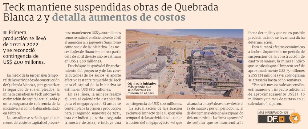 Teck mantiene suspensión de QB II y aplaza puesta en marcha - (El Mercurio de Santiago)