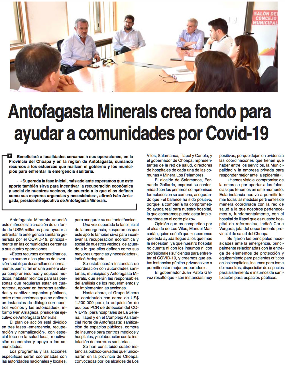 Crean fondo especial para apoyar a comunidades de Choapa ante coronavirus - (El Día)