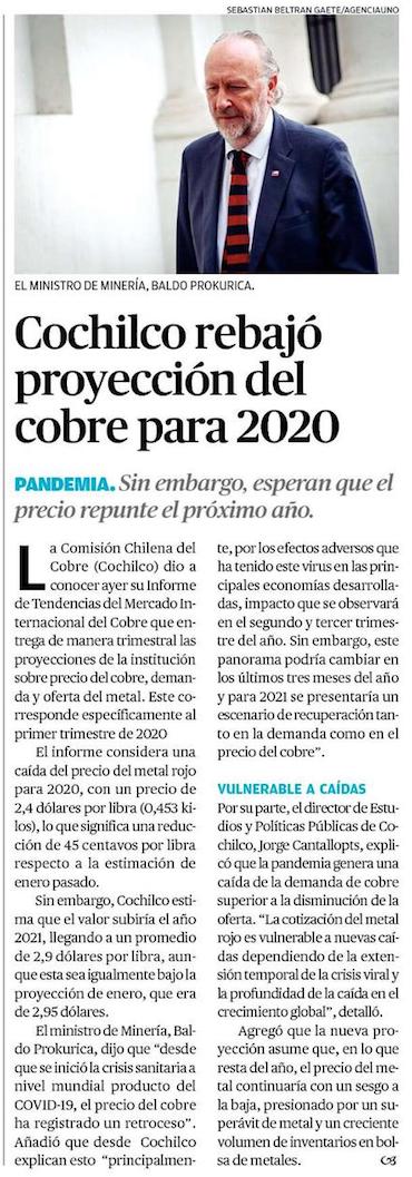 Cochilco: Cobre llegará a US$ 2,4 - (El Mercurio de Santiago)