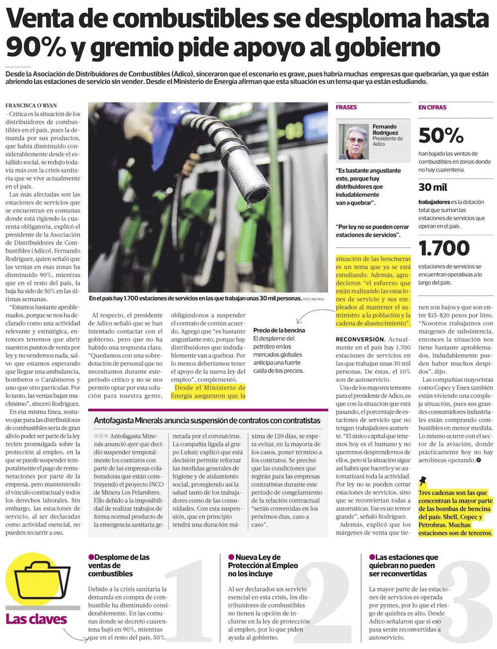 Enap pronostica caída de hasta 30% en consumo de combustibles y anuncia revisión de todos sus proyectos - (El Mercurio de Santiago)