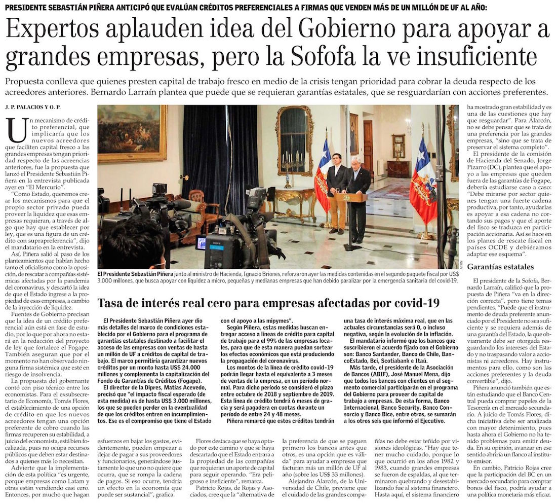 Gran empresariado valora anuncio y la banca dice que hará los máximos esfuerzos - (Pulso)