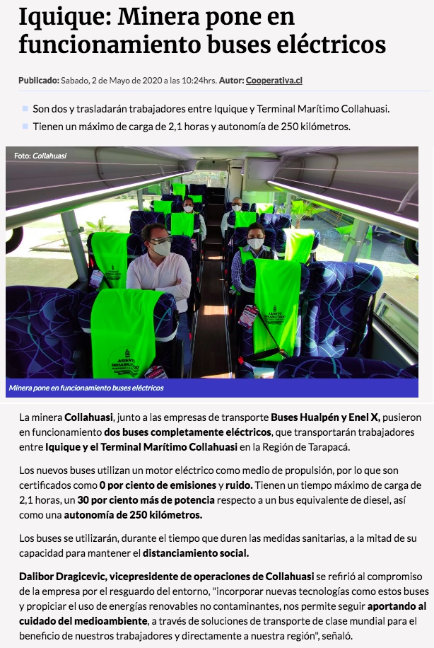 Collahuasi pone en marcha primeros buses eléctricos en Tarapacá - (El Longino de Iquique)