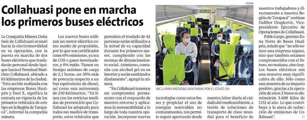 Collahuasi pone en marcha primeros buses eléctricos en Tarapacá - (El Longino de Iquique)