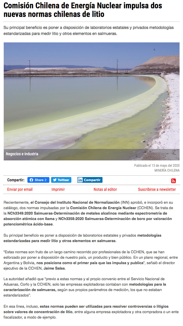 Comisión Chilena de Energía Nuclear impulsa dos nuevas normas sobre el litio - (radio.uchile online)