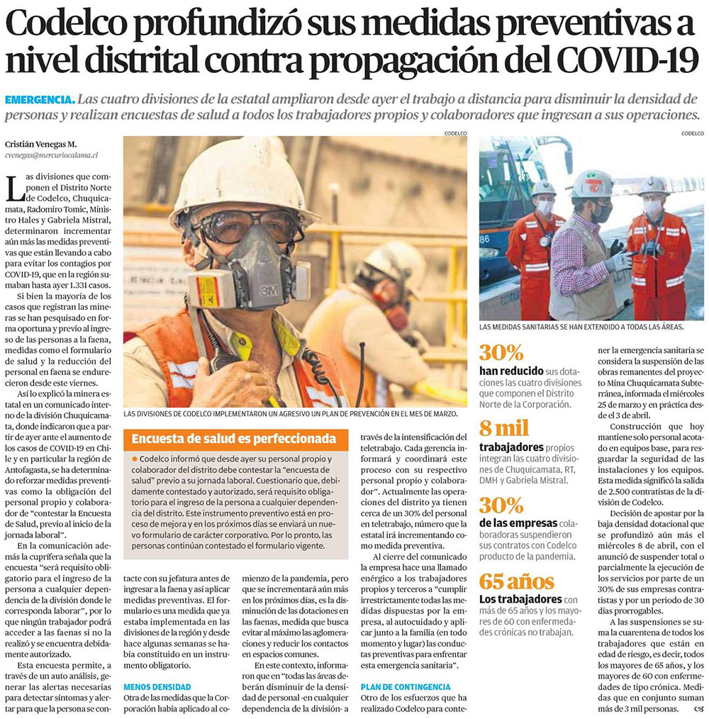 Codelco endurece planes preventivos en sus divisiones - (El Mercurio de Antofagasta)