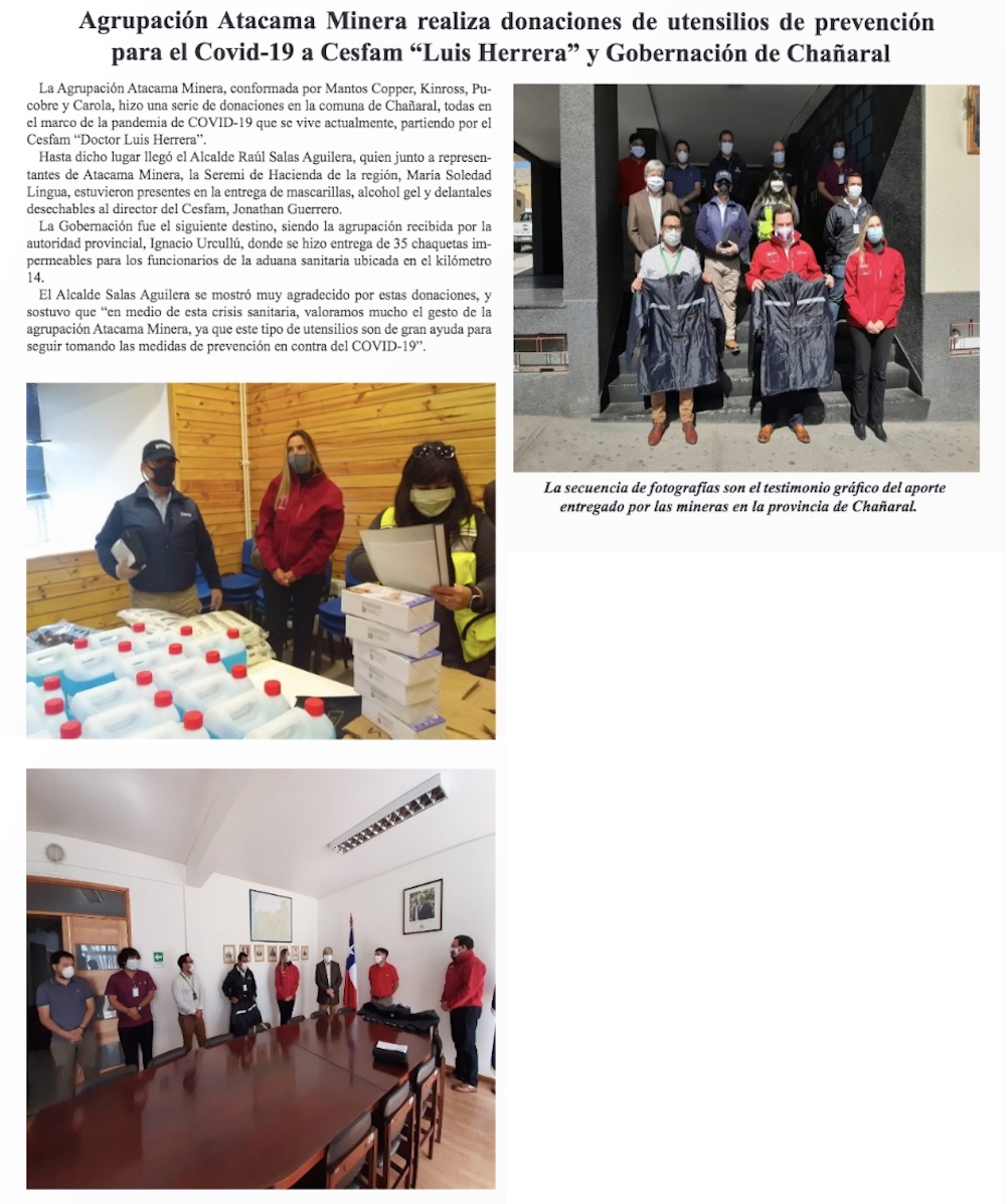 Agrupación Atacama Minera entregó insumos médicos al Cesfam de Chañaral - (El Diario de Atacama)