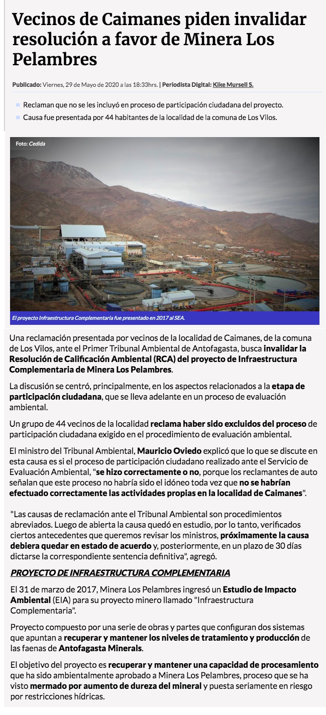 Vecinos en contra de proyecto de Los Pelambres - (La Segunda)