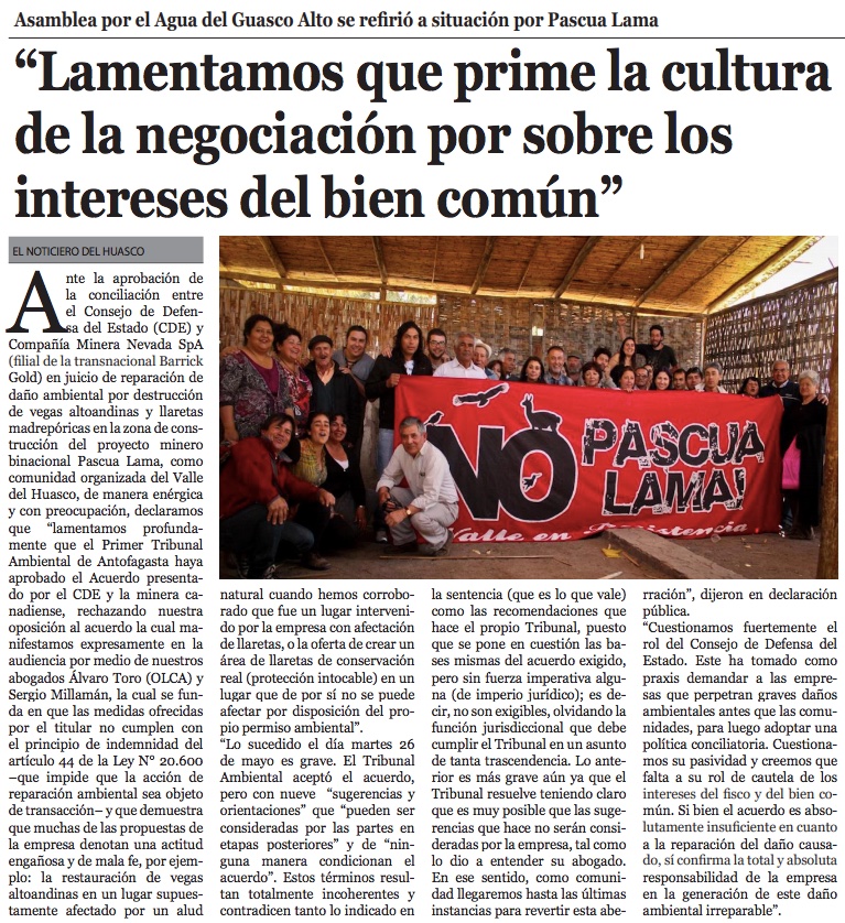 Opositores a Pascua Lama catalogaron de grave conciliación entre el CDE y la empresa - (cooperativa online)