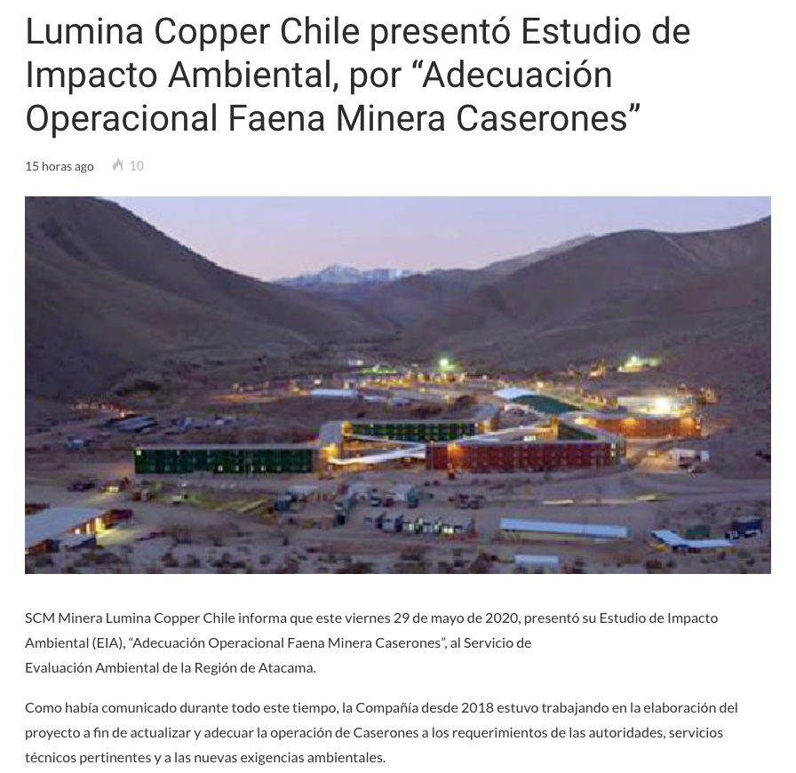 Presentan Estudio de Impacto Ambiental de Minera Caserones - (El Diario de Atacama)