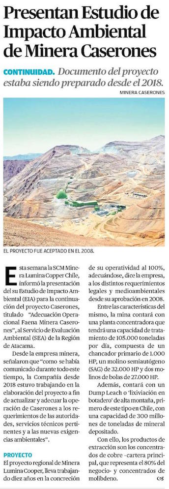 Lumina Copper Chile presentó Estudio Impacto Ambiental por "Adecuación Operacional Faena Minera Caserones" - (Nostálgica Online)