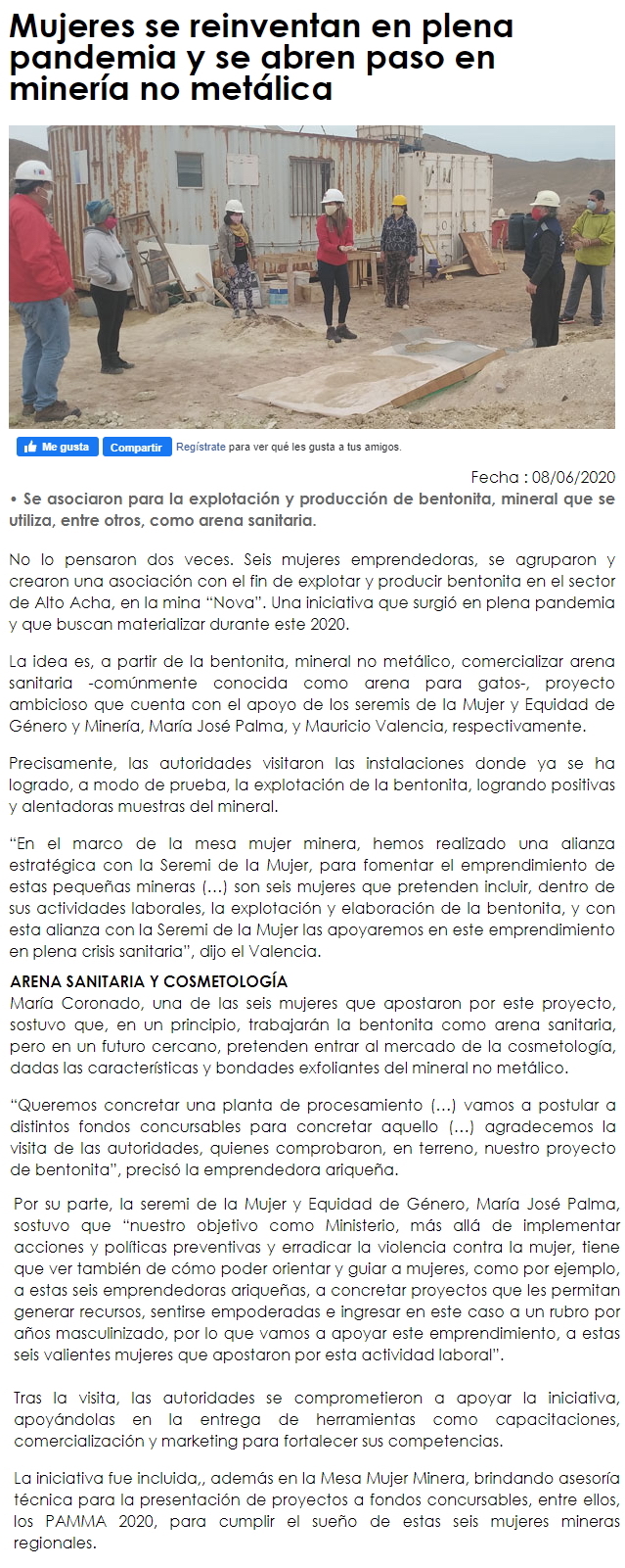 Mujeres se reinventan con minería no metálica - (Estrella de Arica)