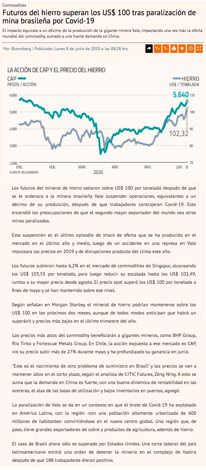 Precio del hierro se dispara y acciones de CAP le siguen el paso - (Diario Financiero)