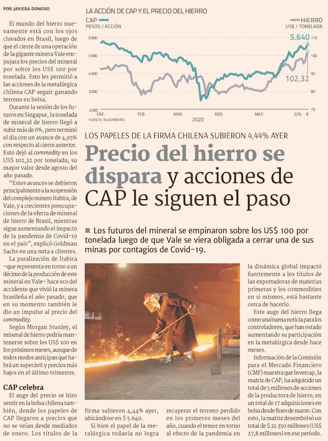 Futuros del hierro superan los US$ 100 tras paralización de mina brasileña por Covid-19 - (DF Online)
