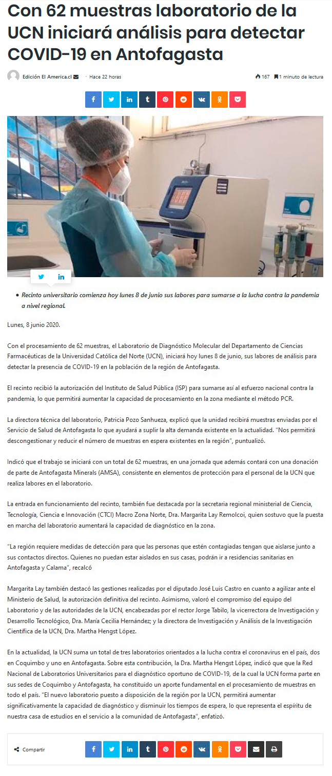 Antofagasta: Laboratorio de la Universidad Católica del Norte se suma a la búsqueda de infectados - (cooperativa online)