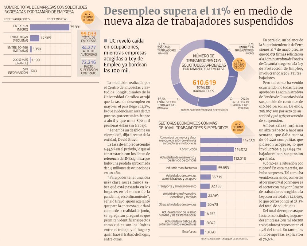 Crisis destruye 2 millones de empleos y nivel de ocupados retrocede una década - (El Mercurio de Santiago)