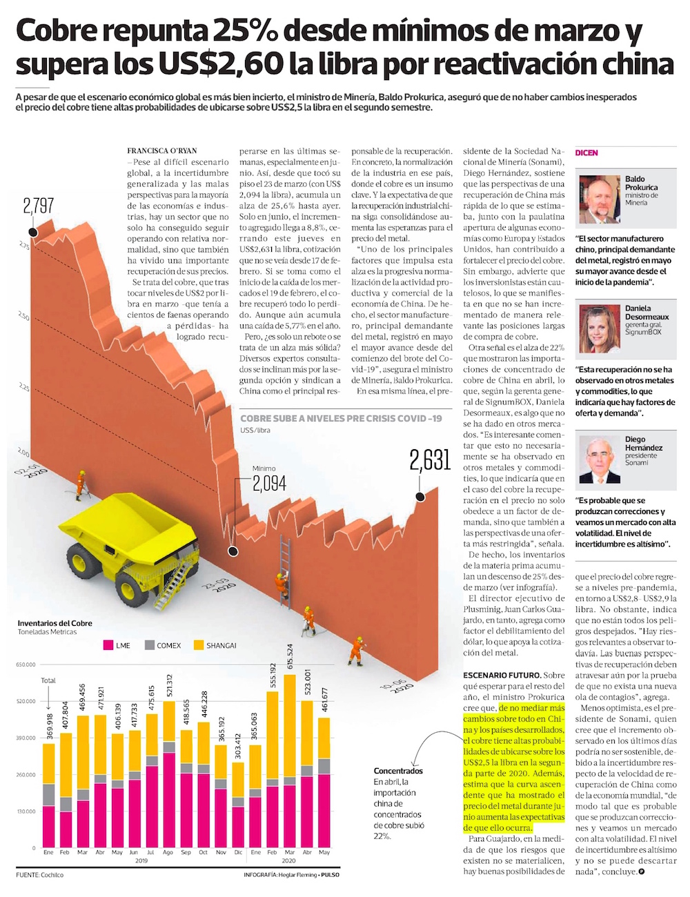 Cobre alcanza niveles previos a la crisis del coronavirus y Goldman anticipa mayores alzas - (Pulso Online)