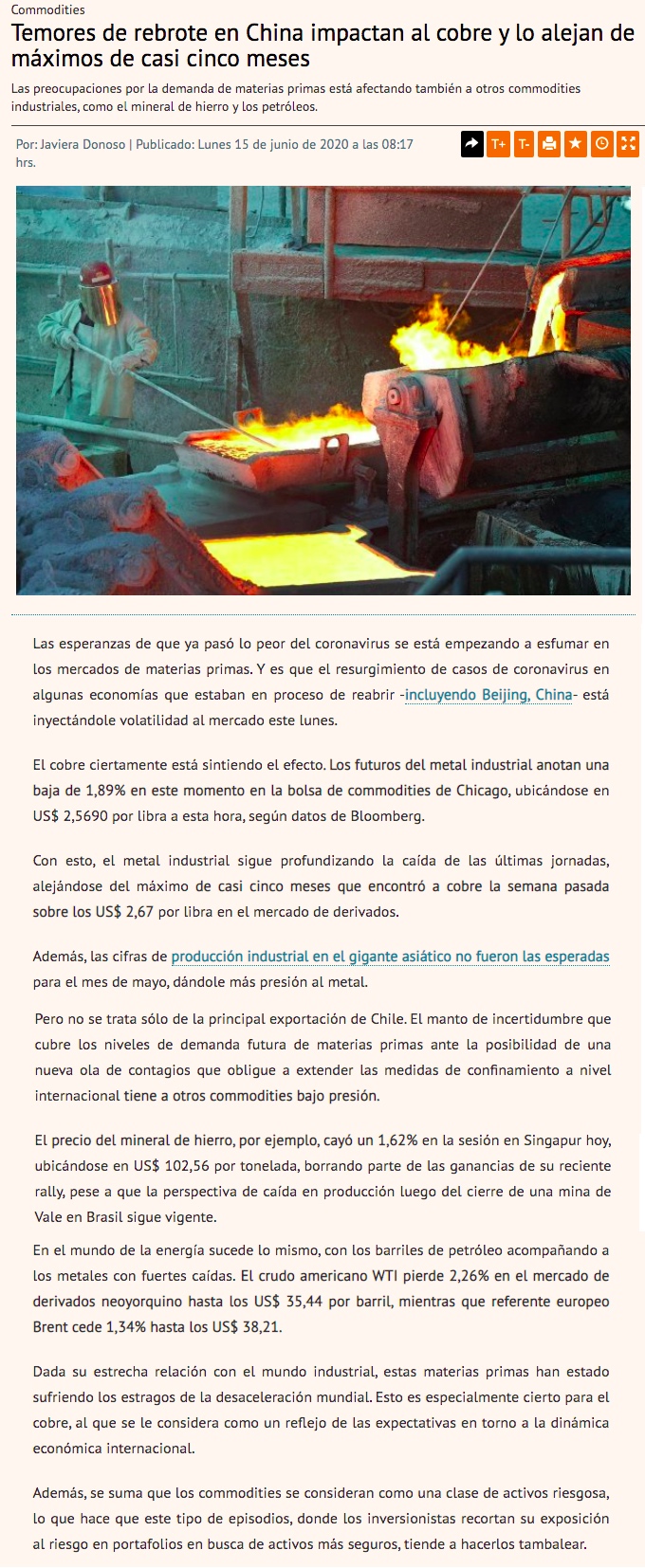 Nuevos brotes impactan precio del cobre y encienden alertas en rubro salmonero - (El Mercurio de Santiago)