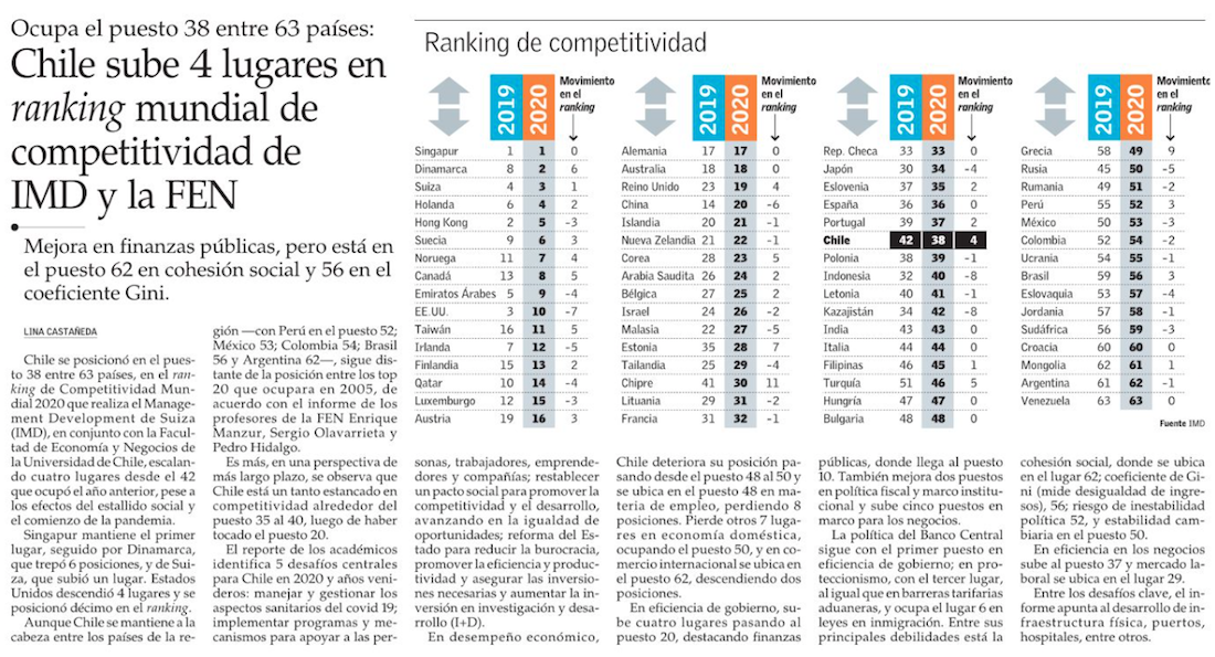 Pese a crisis social, Chile sube a lugar 38 en Ranking de Competitividad Global - (Pulso)