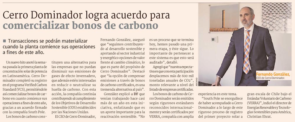 Cerro Dominador logra acuerdo para comercializar bonos de carbono - (enlalinea)