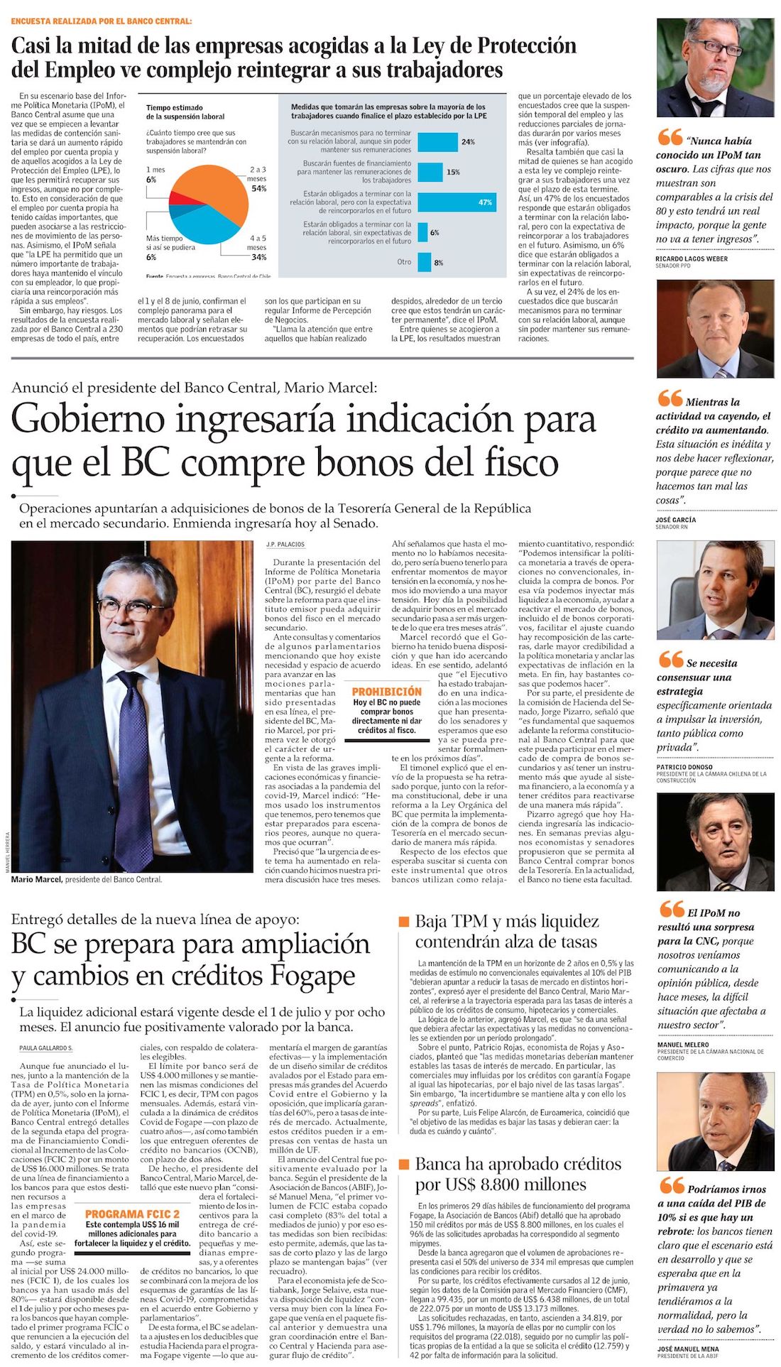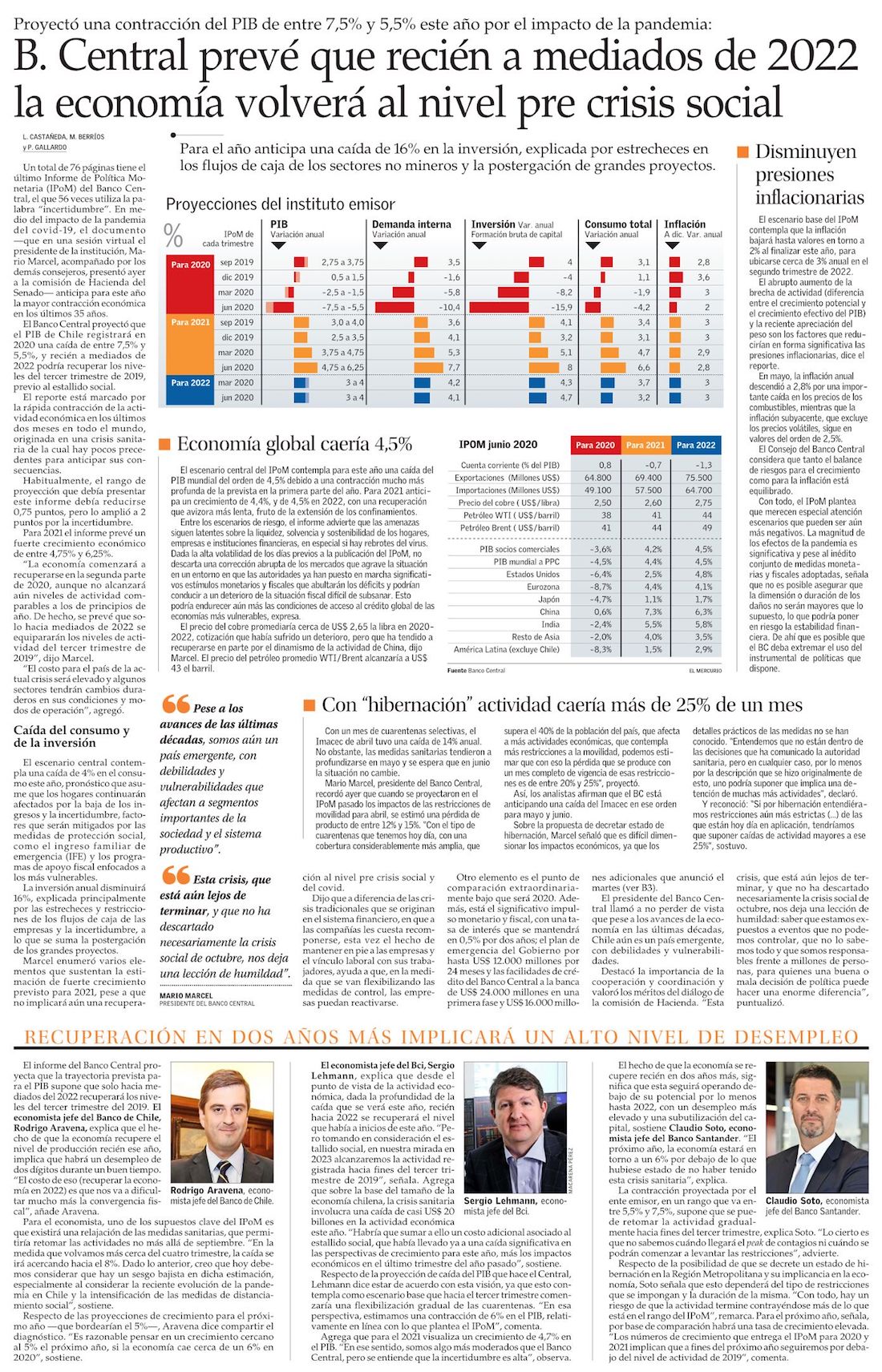 Banco Central asume histórico desplome del PIB y alerta que podría ser peor de ampliarse cuarentenas - (Diario Financiero)