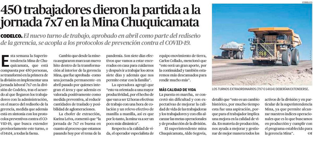Mina Chuquicamata entra a modalidad de 7×7 en sus turnos - (elamerica)